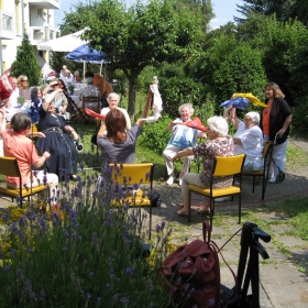 Der Garten ist im Sommer ein beliebter Treffpunkt von Bewohnern und Mietern der Wohnanlage.